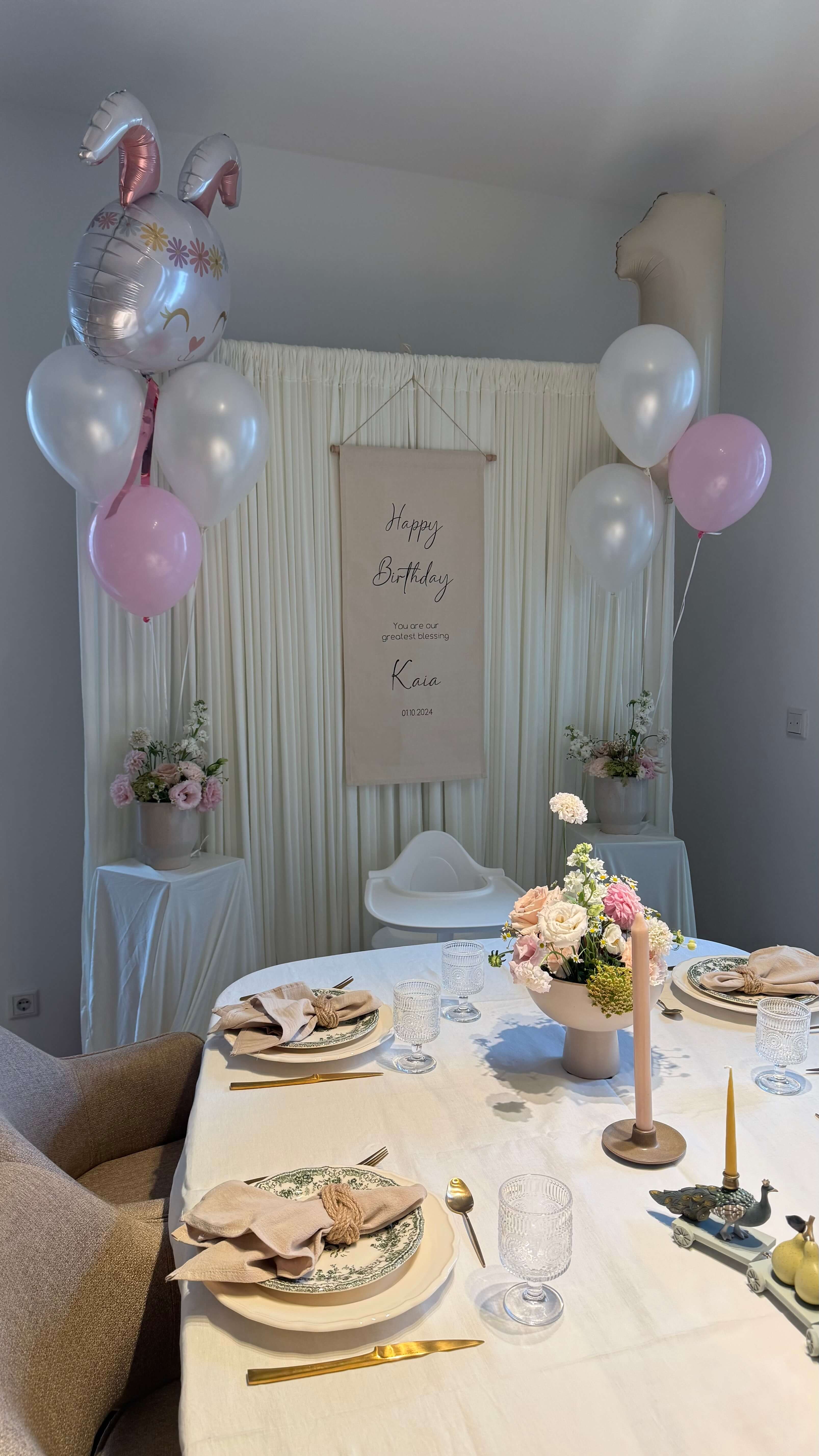 Für den 1. Geburtstag dieses kleinen Lieblings hat Amaly eine Dekoration geschaffen, die nicht nur Kinderaugen strahlen ließ, sondern auch Erwachsene in Staunen versetzte. Von liebevoll ausgewählten Details bis hin zu harmonisch abgestimmten Farben und Accessoires – alles strahlte Freude, Eleganz und Persönlichkeit aus.